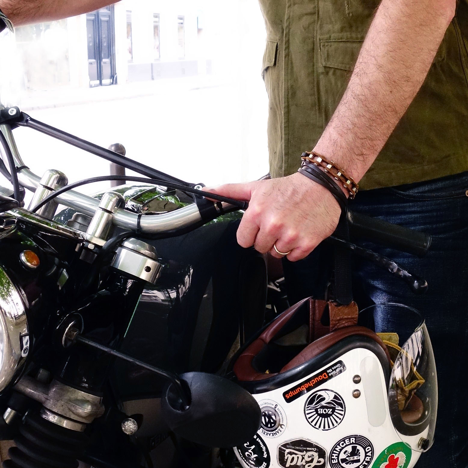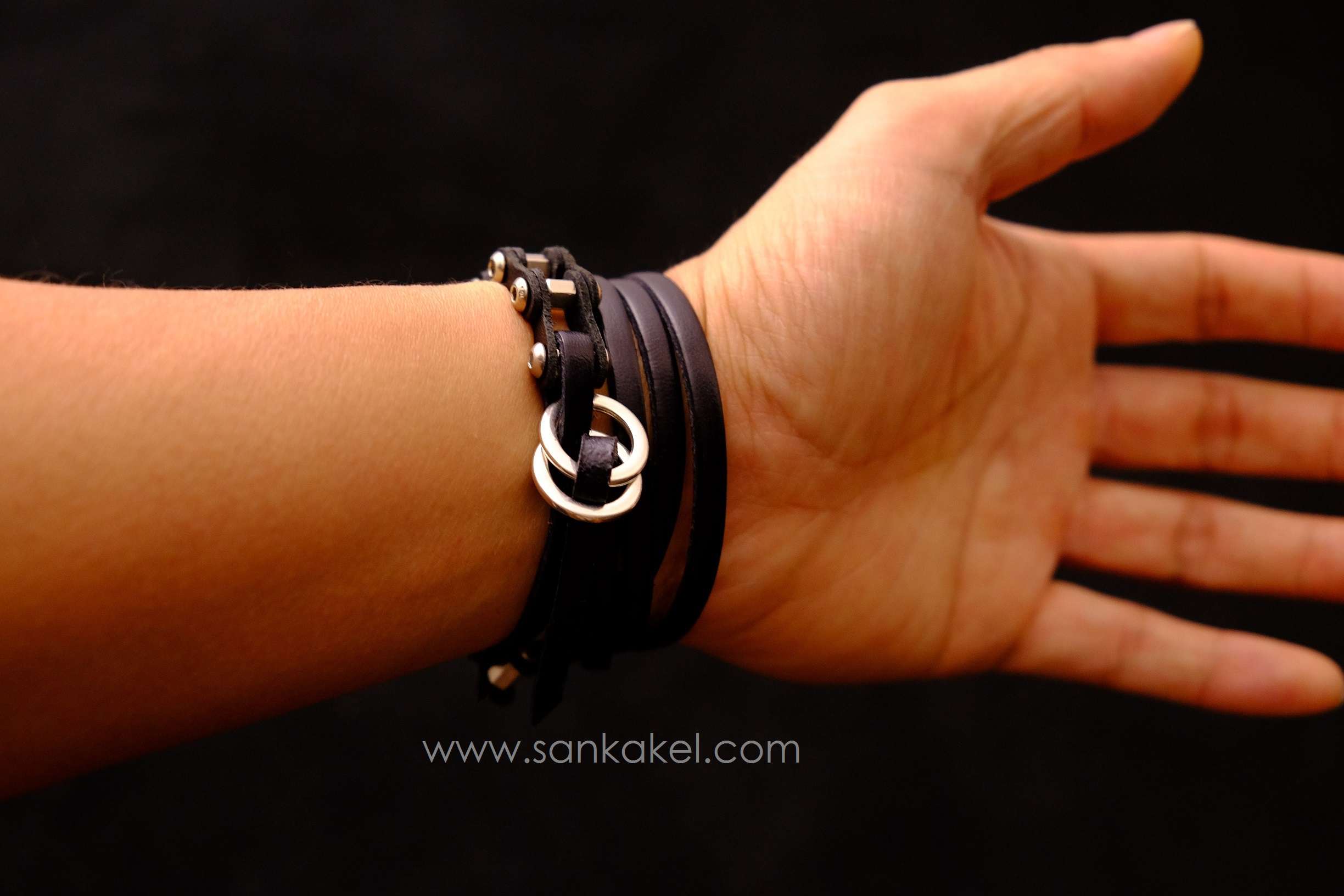 - Black leather bands (caw)