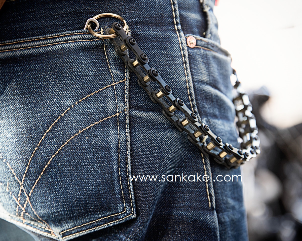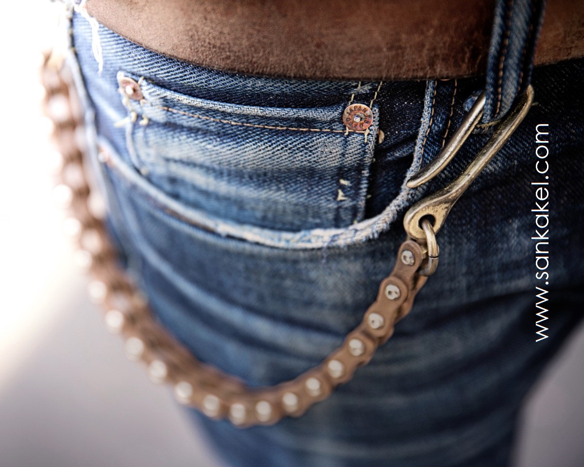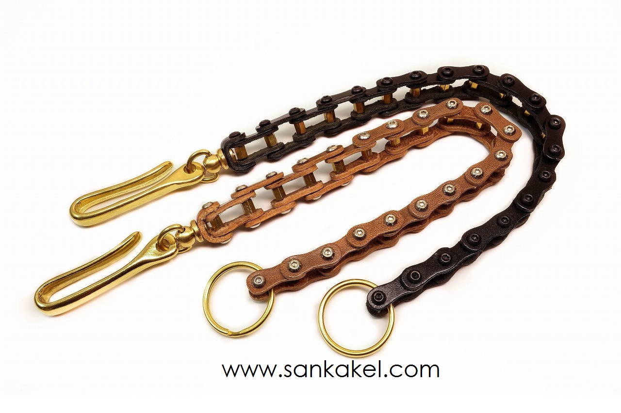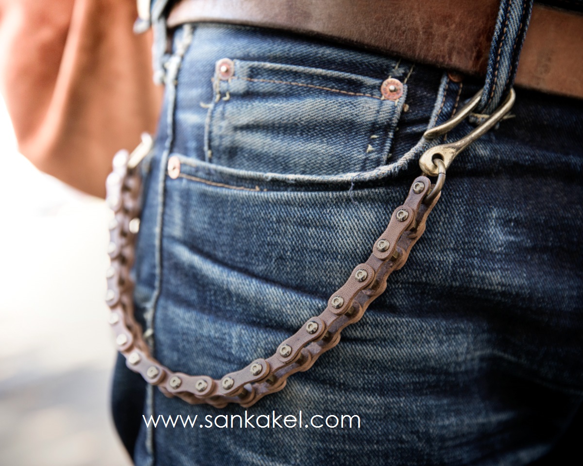 Cordon de portefeuille à maillons en cuir de type "chaîne de moto".